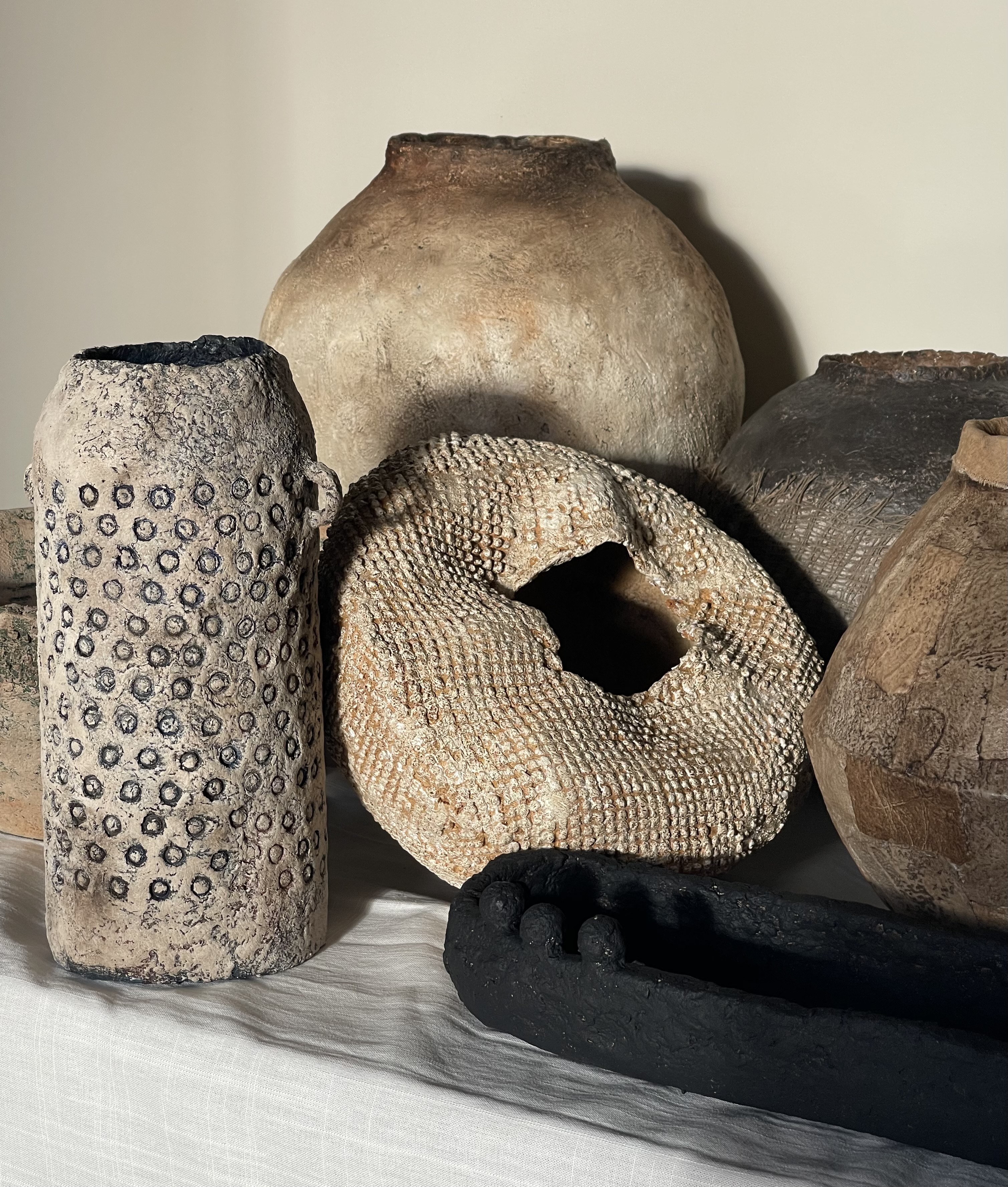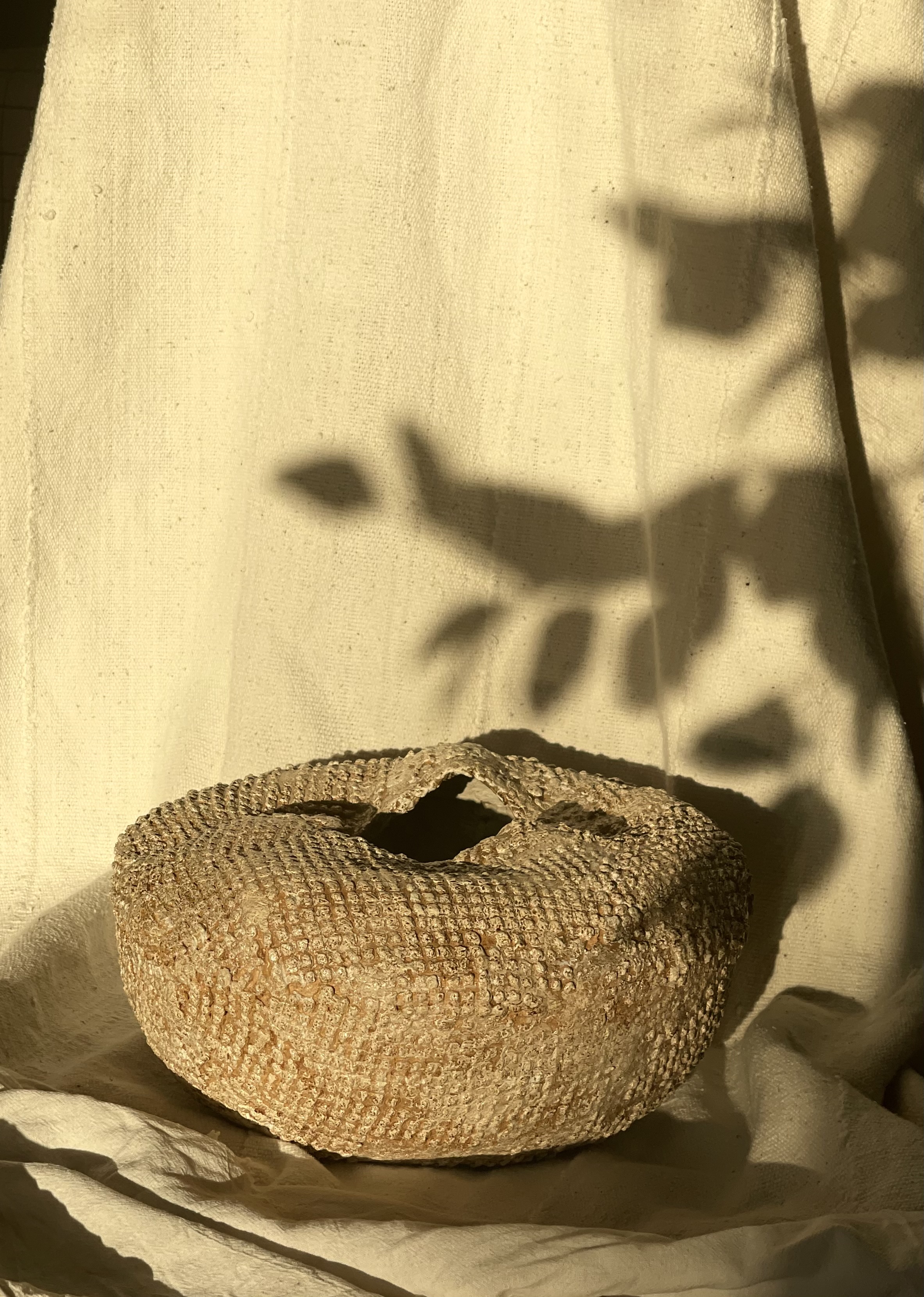 Handcrafted from recycled paper pulp, each piece explores the balance between structure and softness, art and function.