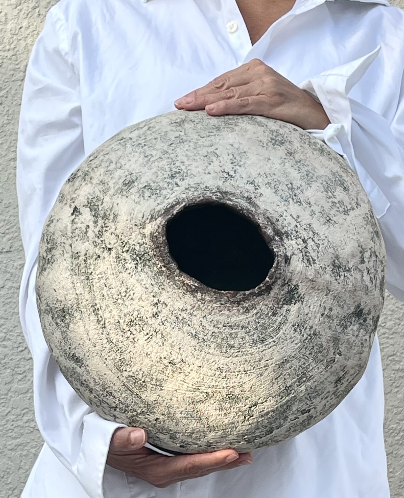 After years dedicated to interior design, she returned to her artistic practice through teaching, discovering paper as her primary medium. Today, she creates sculptural pieces conceived to integrate naturally into contemporary interiors.